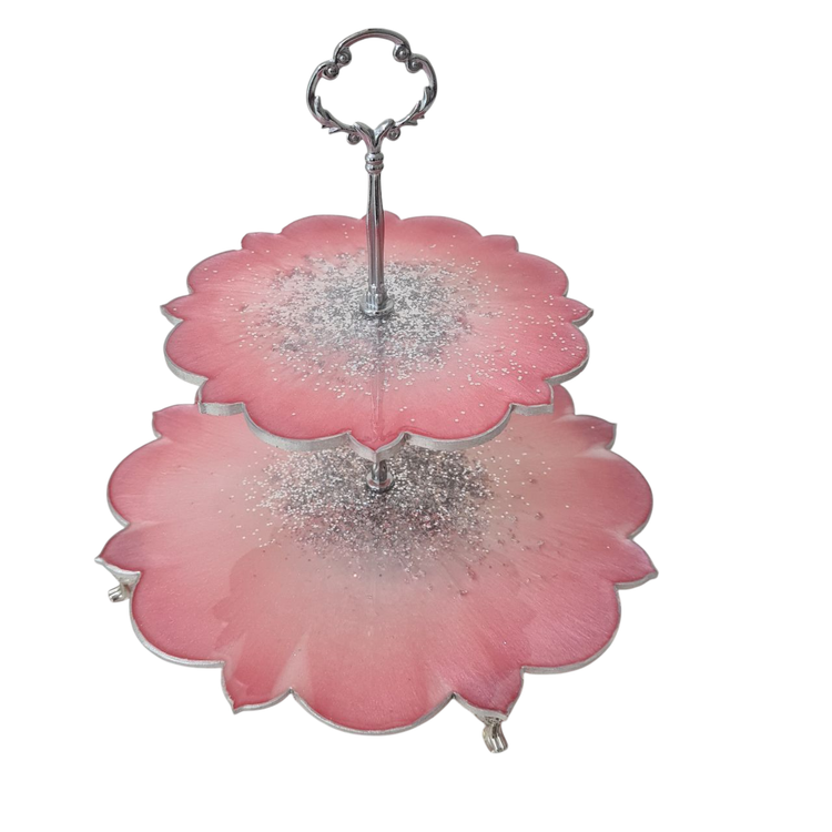 شیرینی خوری ۲طبقه تمام رزینی که درسایز های ۲۰سانت و۳۰سانت اجرا شده که دارای هولدر فلزی است.قابل سفارش در رنگ و طرح مورد نظر شما است .