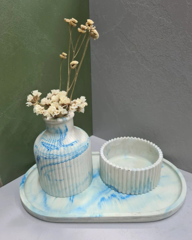 تزئینی، دکوری ،مناسب هدیه دادن ،شامل سینی بیضی جاشمعی درب دار،گلدان کوچک یا جای خوشبوکننده، قابل سفارش درتعداد و رنگبندی دلخواه
